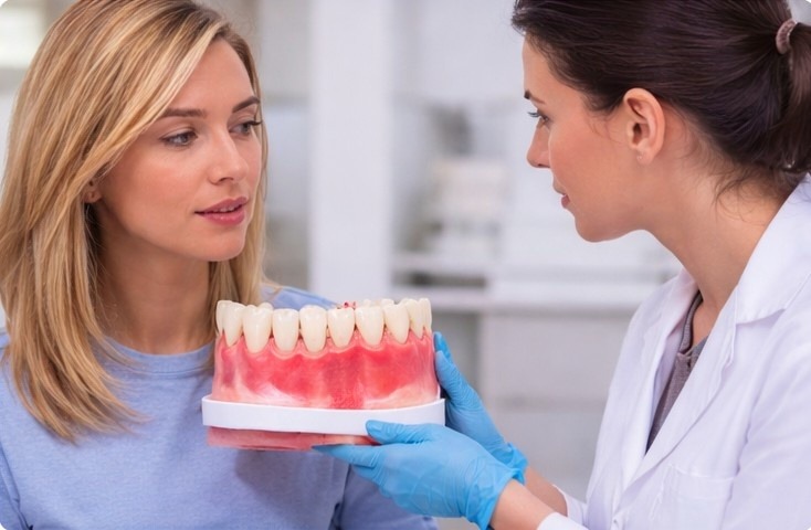 Periodontics is a specialized branch of dentistry that focuses on the prevention, diagnosis, and treatment of diseases affecting the gums and the supporting structures of the teeth. These include the gums, periodontal ligament, and bone. Periodontal problems usually start as gum inflammation, commonly known as gingivitis, and can progress to more serious conditions called periodontitis if left untreated. Periodontic care helps restore gum health, reduce infection, and protect the bone that supports your teeth.